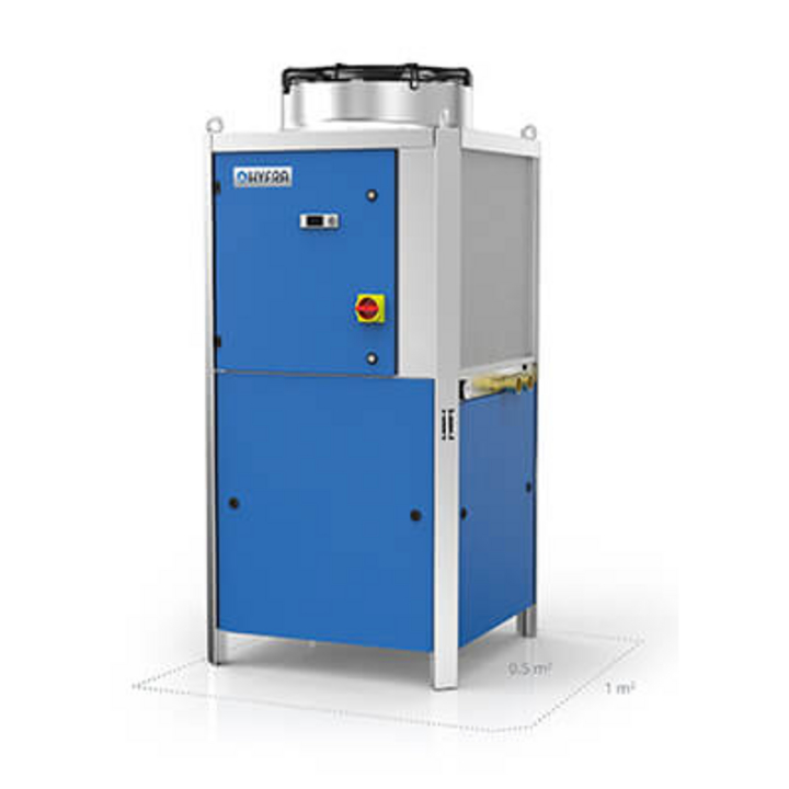 This is also reflected in HYFRA’s industry portfolio. The HYFRA Alpha circulating chiller is mainly used in filtration and offers a cooling capacity of up to 80 kW on a floor space of 1 m2 – the “Reduced Footprint” version is particularly space-saving, providing a cooling capacity of up to 16 kW over an area of just 0.5 m2. The HYFRA Sigma recirculating chiller is particularly suitable for cooling laser and machine tools, with a power range from 5 to 28 kW over 0.5 m2 up to 320 kW over just 4 m2. Both the HYFRA Alpha circulating chiller and the HYFRA Sigma recirculating chiller are also available as particularly space-saving compact versions with a height reduction of up to 40%.