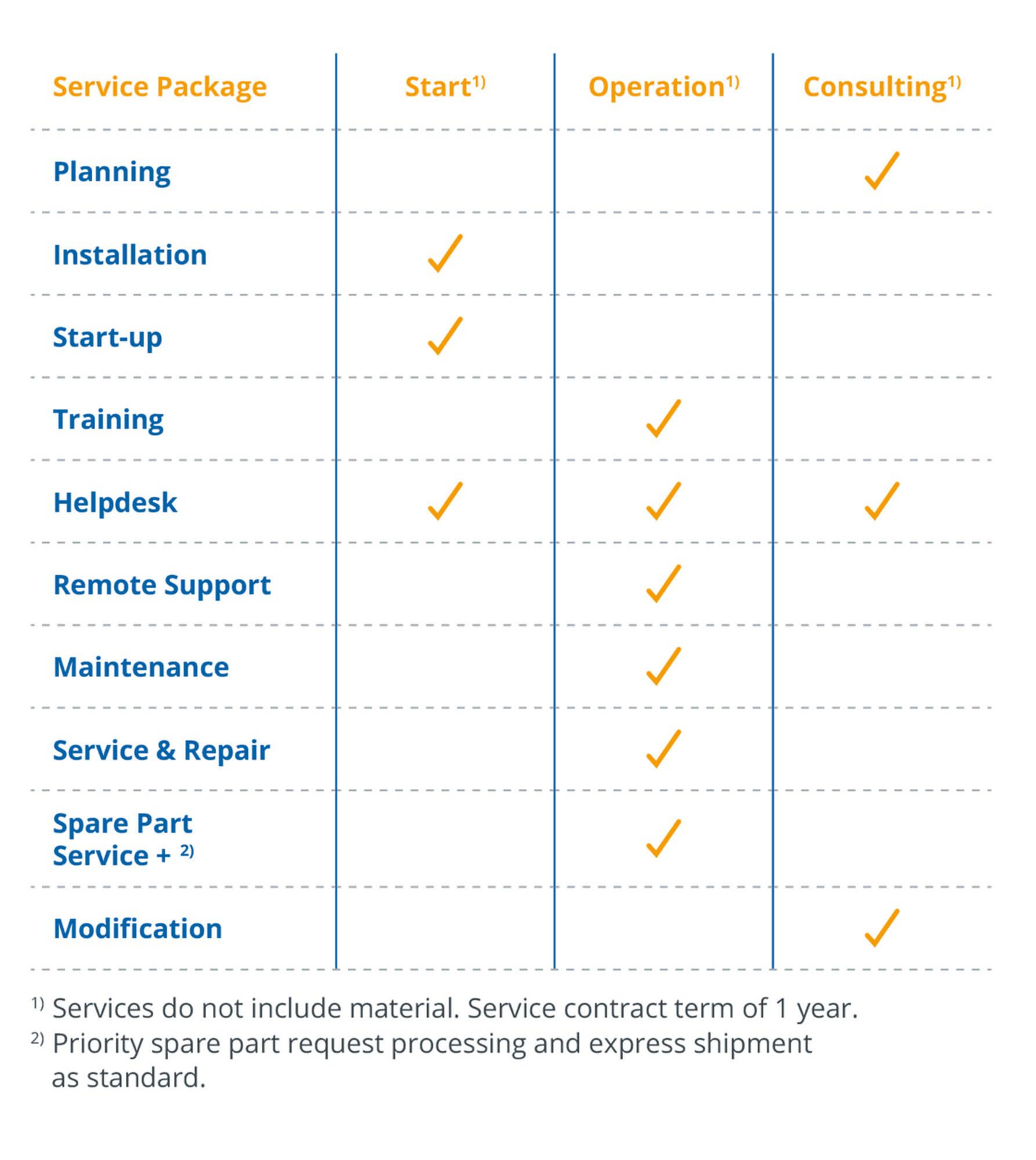 In order to deliver top performance continuously, cooling systems must be serviced regularly. This also helps effectively avoid expensive repairs and unexpected production downtime. And maintenance measures can significantly extend the system’s life cycle. At HYFRA, you can select one of several service packages with 1-year terms. They include maintenance and services, including start up.